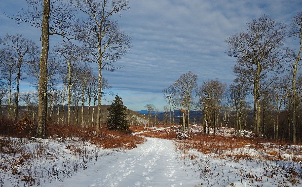 The Father Loop at Alford Springs begins with a moderate uphill rise lined with birch trees. At the crest of the ridge, the views of Greylock are breathtaking on a clear day. Much of the hike is on old forest roads making conversations with fellow hikers easy before the trail ascends again to the ridge and returns to the parking area. Multiple stream crossings, lovely when ice covered, remind hikers of why this area is known for its many springs.